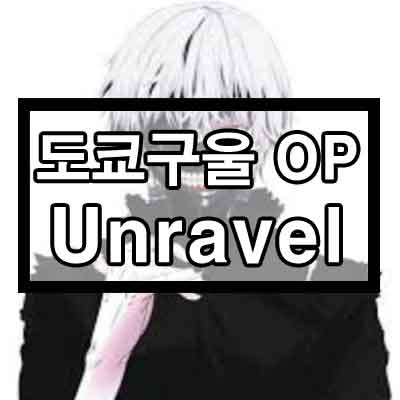 이번에 소개해드릴 곡은 TK라는 가수가 발매한 곡인 Unravel이라는 곡입니다. 이 곡은 도쿄 구울의 작가가 해당 가수의 팬이여서 열렬히 제의를 넣은 결과 도쿄 구울의 1기 오프닝 테마로 만들어질 수 있었습니다. 도쿄 구울 시리즈의 간판 곡이라고도 할 수 있게 될만큼 잘 성공한 노래구요, 한번 들어보도록 할까요?